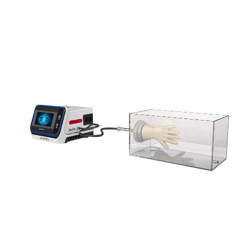 設定充氣參數(shù)后啟動,手套內(nèi)的充氣壓力應保持2min,波動不超過充氣壓力的±10%,在觀察可能出現(xiàn)的氣泡時,可延長一定測試時間,但不應超過30s。;