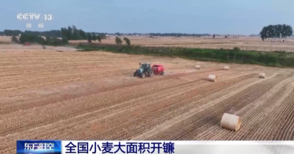 總臺(tái)央視記者李琳:在河南省駐馬店市正陽(yáng)縣寒凍鎮(zhèn)侯莊村,我們發(fā)現(xiàn)奔跑在麥田里的,除了收割機(jī),還有一種機(jī)器——打捆機(jī)。收割機(jī)收獲完后把秸稈留在地里,打捆機(jī)緊隨其后,將秸稈一一打成圓柱形的大捆整齊地碼在地里。