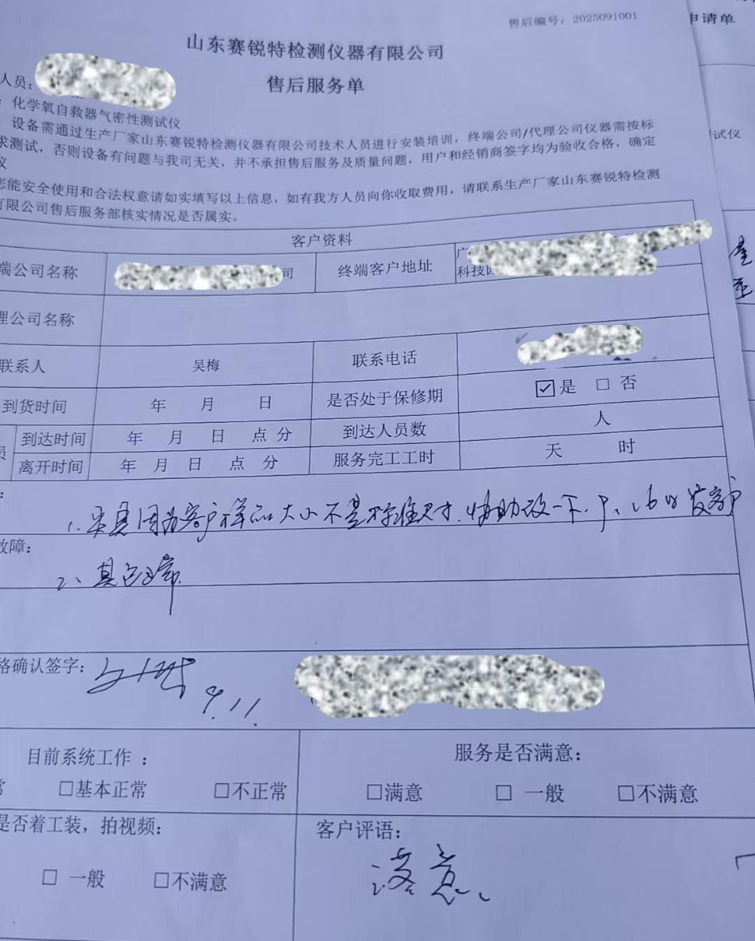 化學(xué)氧自救器氣密性測試儀:山東賽銳特為廣州某某科技公司提供上門培訓(xùn)服務(wù)